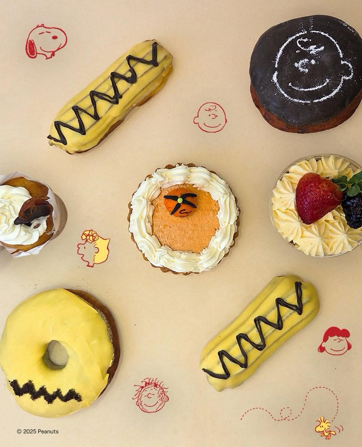Mientras que los alimentos incluyen chapatas, toasts, fruta con avena, así como postres únicos como las Snoopy's donuts, pastelillos, galletas, muffins y muchos más.