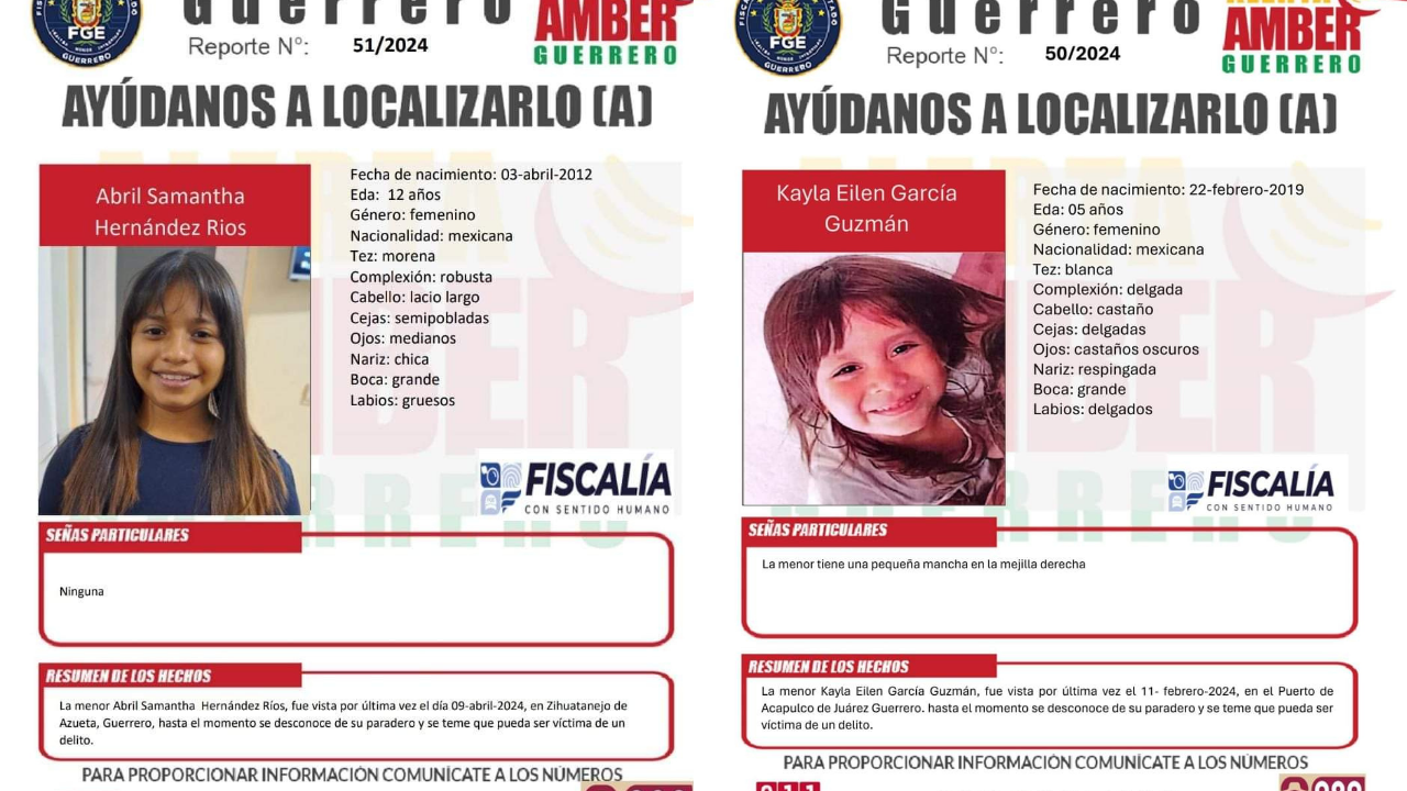Los menores de edad siguen desaparecidas en los municipios de Acapulco y Zihuatanejo, la más pequeña Kayla Eilen García Guzmán de tan solo 5 años y Abril Samantha Hernández Ríos de 12 años de edad.