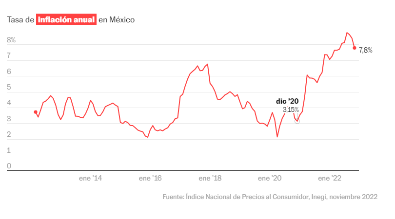 El presidente Andrés Manuel López Obrador celebró la baja en la inflación que pasó de 8.41 por ciento en octubre a 7.80 por ciento en noviembre.