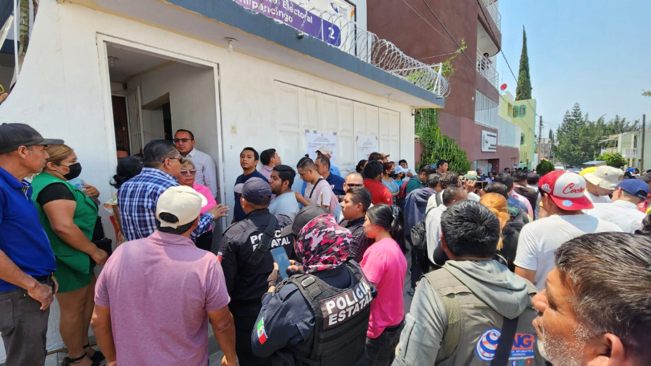 Lo anterior generó un altercado, que provocó varios empujones, ya que los comisarios temen que la gente del candidato de la alianza Morena- Partido del Trabajo -Partido Verde Ecologista intente robarse la elección.