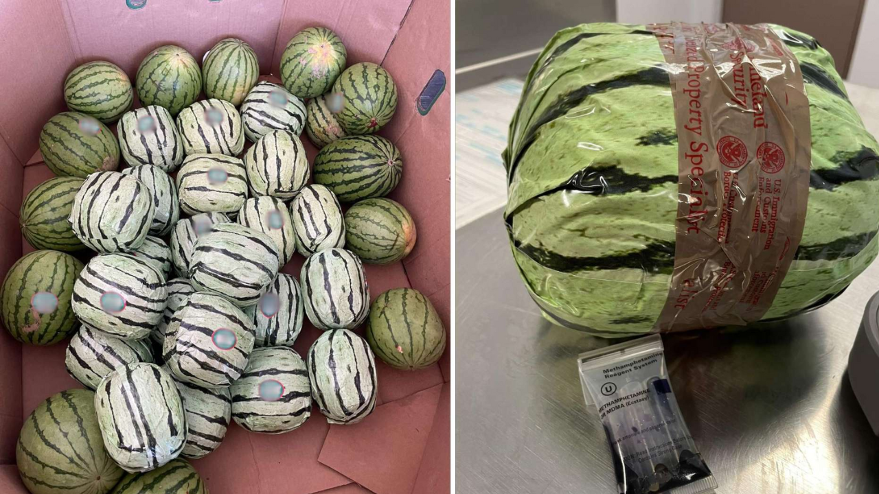 Oficiales de Aduanas y Protección Fronteriza de Estados Unidos, decomisaron más de 5 millones de dólares en metanfetamina oculta en sandías falsas.