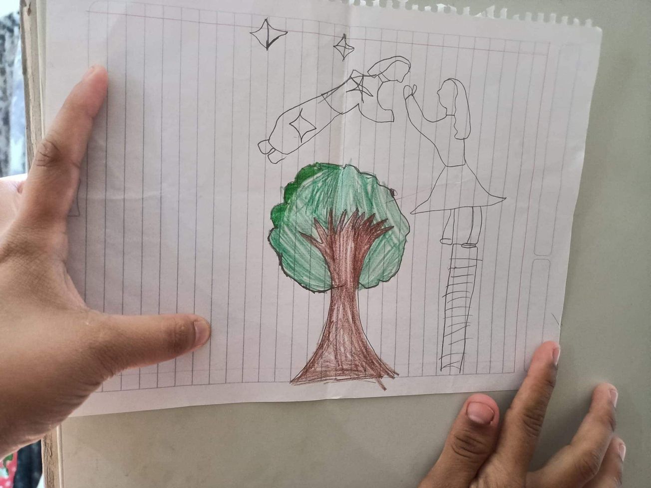 Resulta impactante hoy para ella porque sumado a esto, hace poco revisando las cosas de Nataly encontró un dibujo muy particular. Lo había realizado un mes antes a su muerte, cuando ambas estaban recluidas en casa de la abuela después de contagiarse de COVID-19.