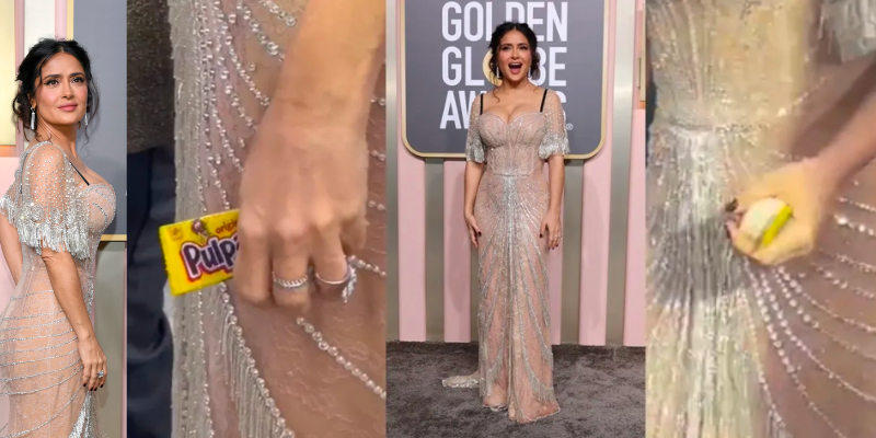 La actriz mexicana, Salma Hayek, se ha caracterizado por nunca olvidar sus raíces mexicanas, y es que anoche en los Globos de oro, la veracruzana llegó a la alfombra roja con un dulce Pulparindo y dos mazapanes que no soltó en ningún momento.