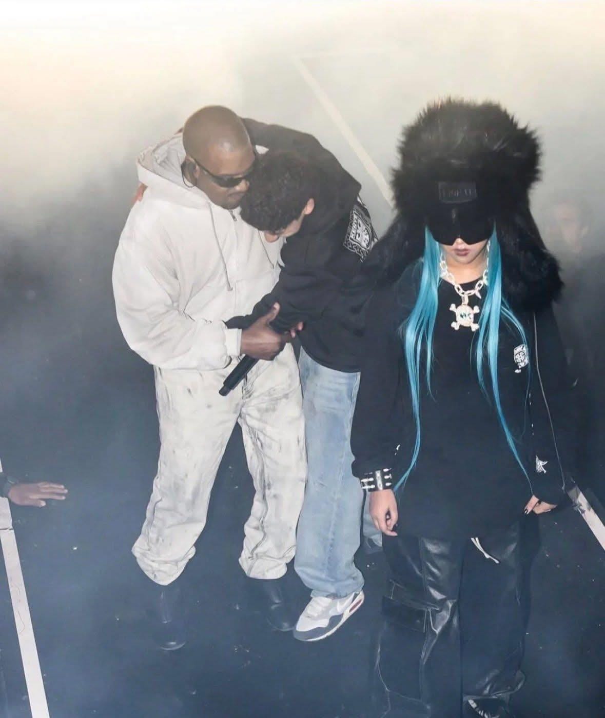 En la segunda noche, durante uno de los bloques más intensos del show, un fan logró acercarse al escenario y abrazar a Ye en pleno concierto, generando un estallido de emoción en la audiencia y escenas que rápidamente se volvieron virales en redes sociales.